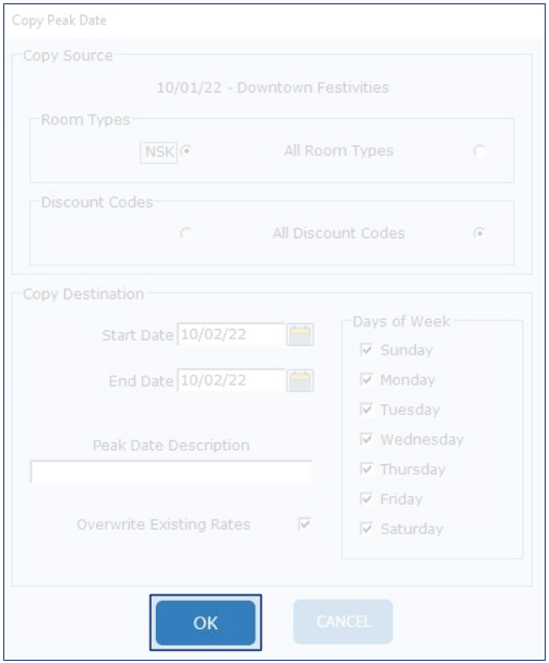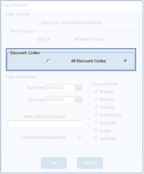 4. Choose to copy the discount code peak date to the new peak dates, if you have set up any.