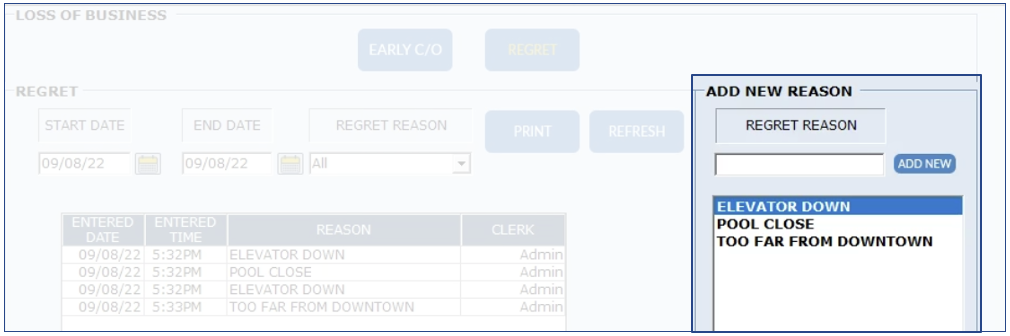 2. On the right side, enter a new "Regret" in the "Regret Reason" field and click "Add New".