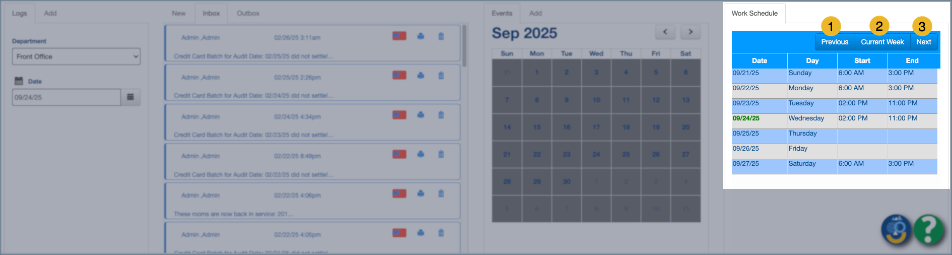 You can view schedules from past (1), current (2), and upcoming (3) days seamlessly.