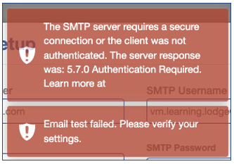 3b. If there is an error in the settings and VM cannot connect to your email provider, then a red message will popup. You will need to review the settings with your email provider.