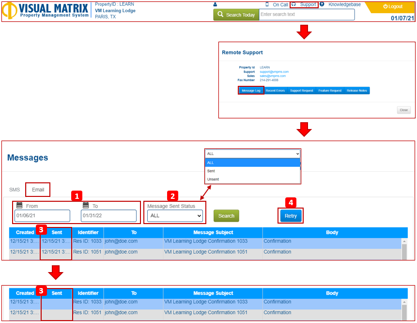 3- Sent Column: if there is a date and a time, Visual Matrix has sent the email. If the email has not been received, the recipient should check the Spams folder or other security logs on the email provider portal.