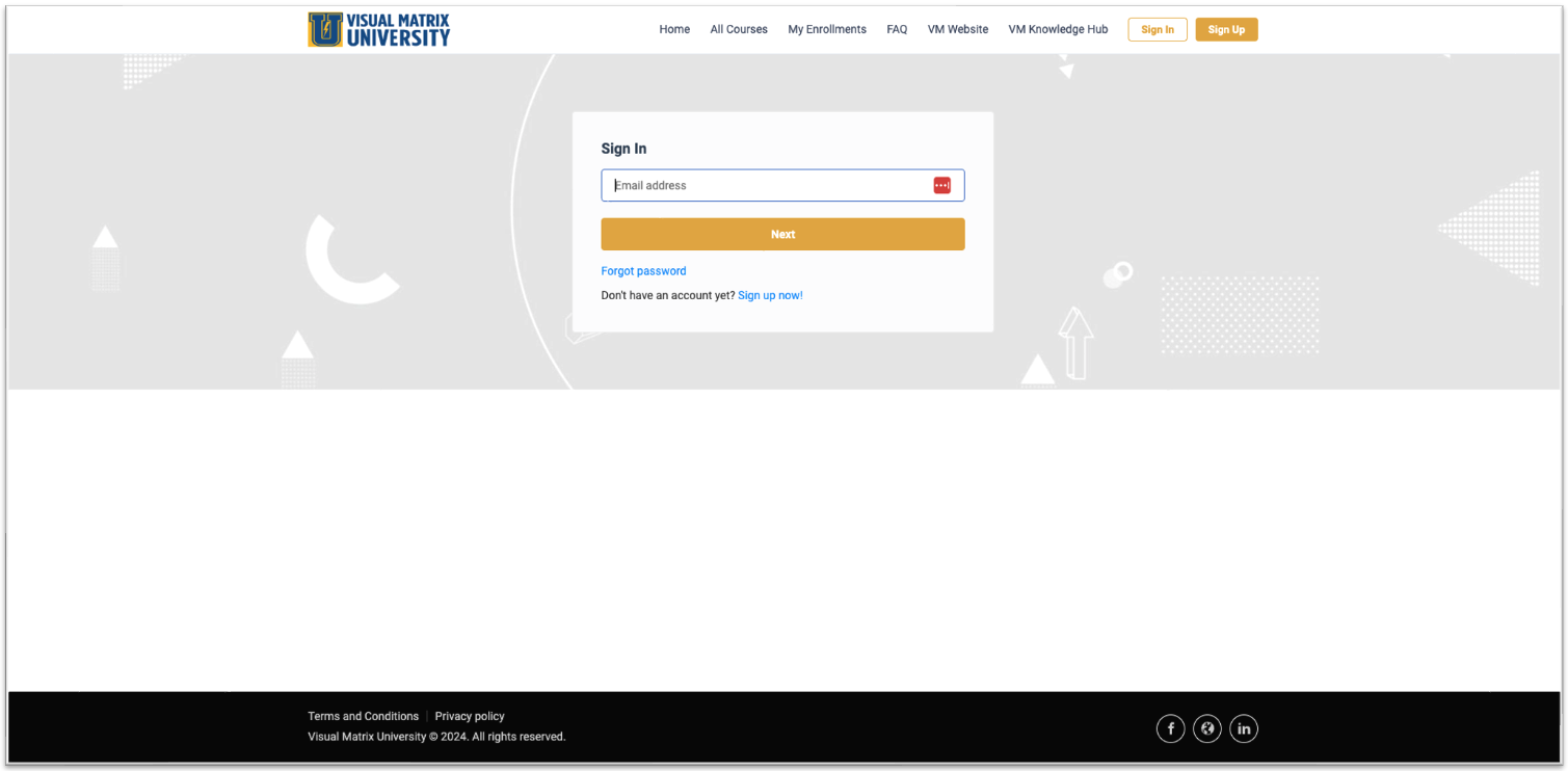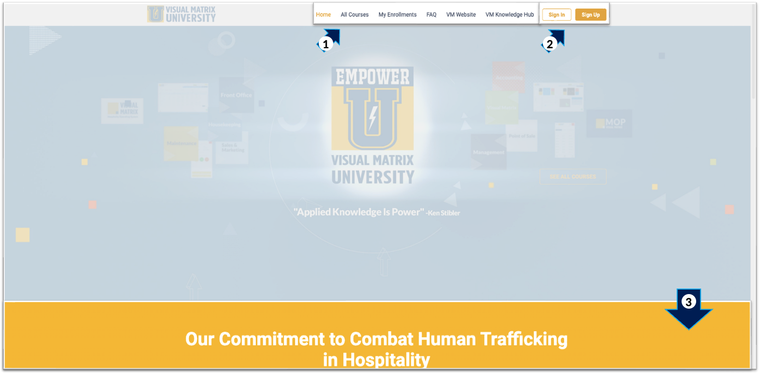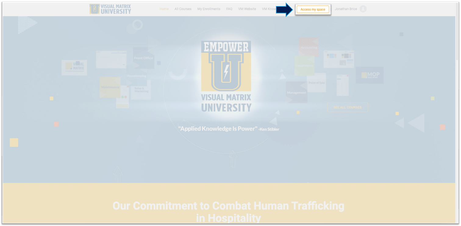 1. Access all courses in the University, along with other Visual Matrix portals, including the Visual Matrix and MOP websites, as well as the Knowledge Base.