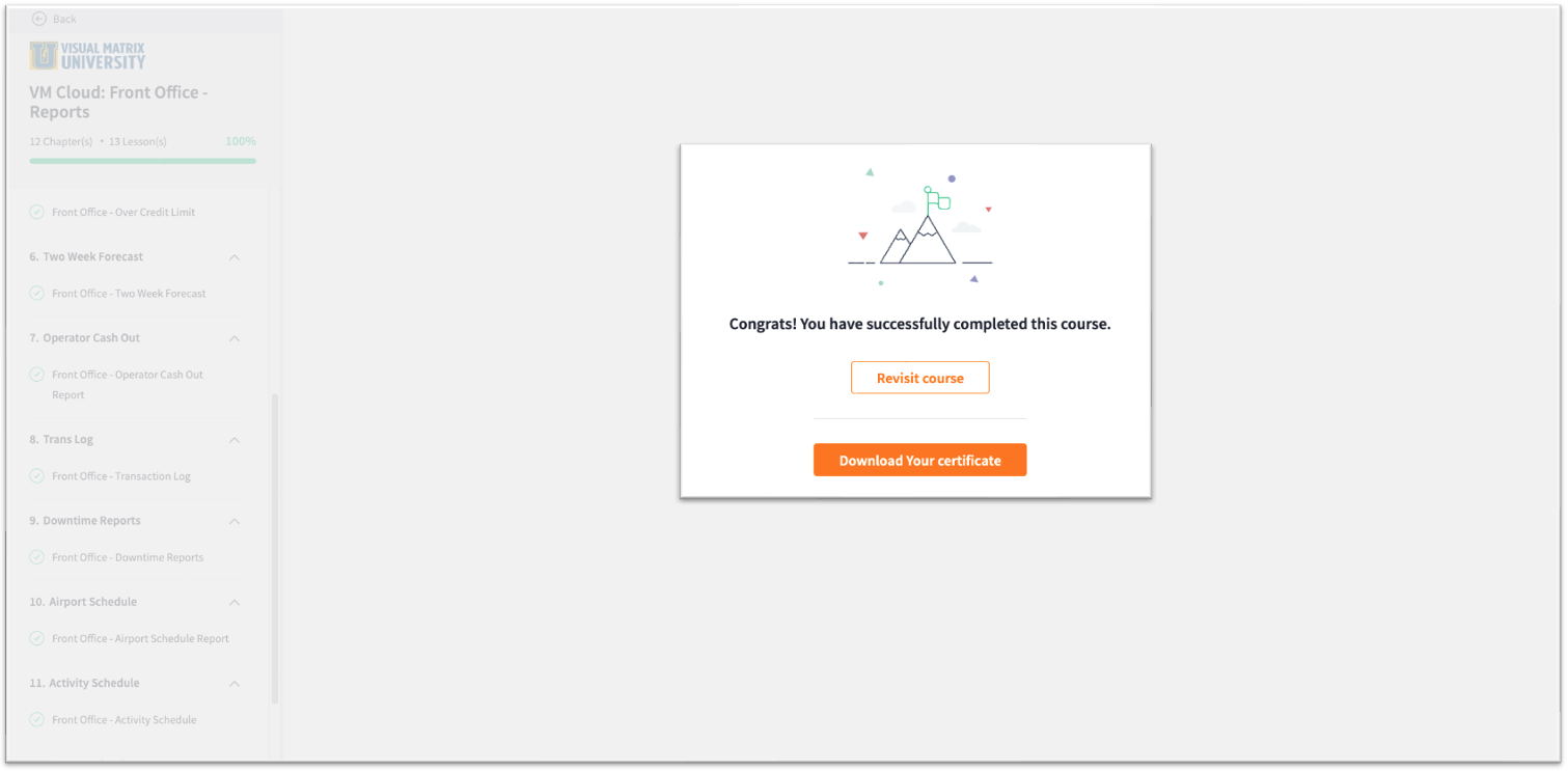 The VM University is currently only available in English. Visual Matrix University has a course for each department and section in Visual Matrix. To accommodate your training needs, we have created different types of courses: - Detail Courses: These ...