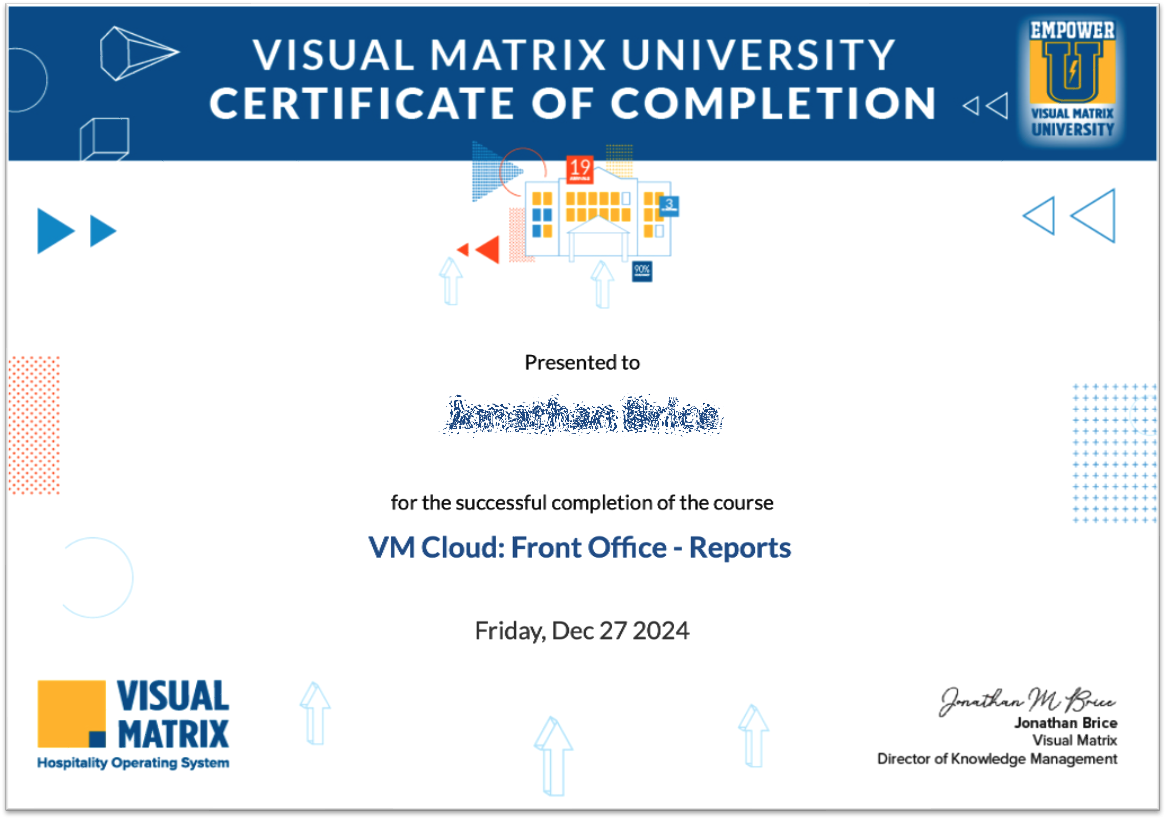 Visual Matrix offers multiple types of free training and knowledge access that is included in your plan: Visual Matrix University, Knowledge Base and VM Community. We even have a New Hotel Employee Onboarding Guide to make Visual Matrix easy to learn ...