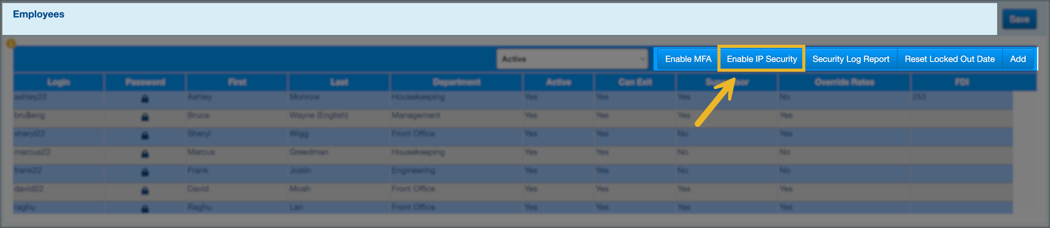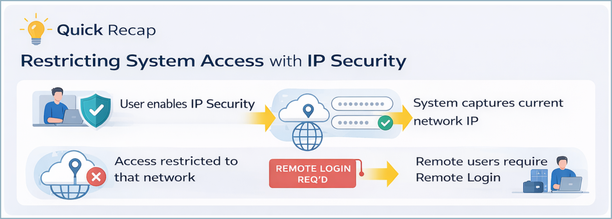 IP Security limits system access based on your property’s public IP address. This creates an additional layer of protection by preventing login attempts from unapproved locations.