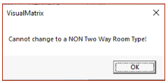 Message "Cannot Change to a NON Two Way Room type!" (BW)
