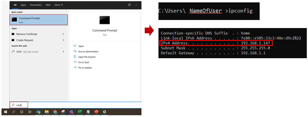 Open the Cmd Window, and type IPCONFIG > Enter