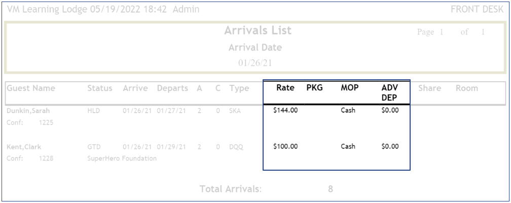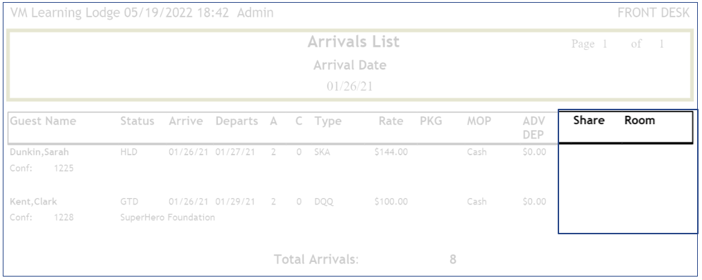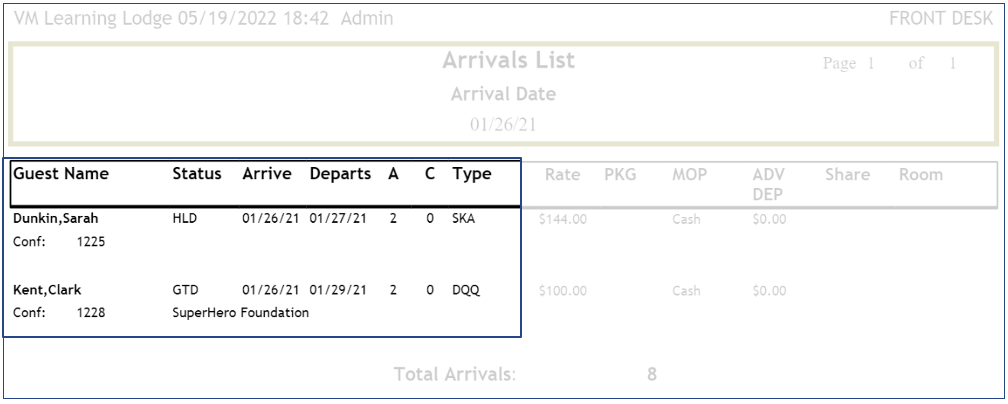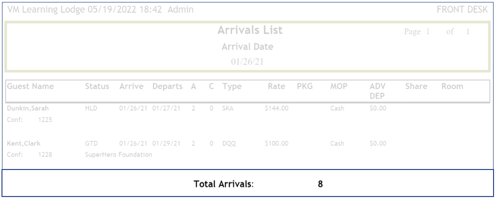 The Arrival report shows every arrival for the day, individuals as well as groups.