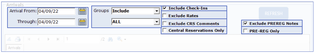 - by including already checked in rooms, which will show not only the remaining arrivals but all arrivals for the selected period.