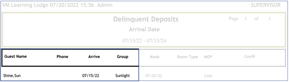 Path: Front Office > Supervisor > Reports > Advance/Delinquent Deposits