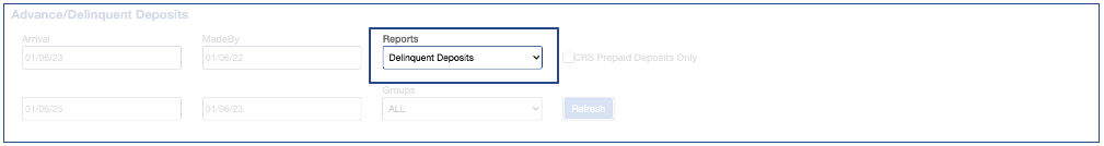 1. Choose "Delinquent Deposits" from the "Reports" dropdown.