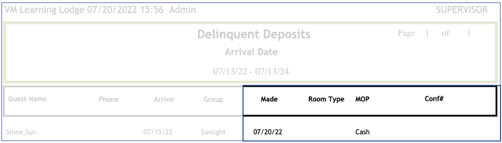 Path: Front Office > Supervisor > Reports > Advance/Delinquent Deposits.