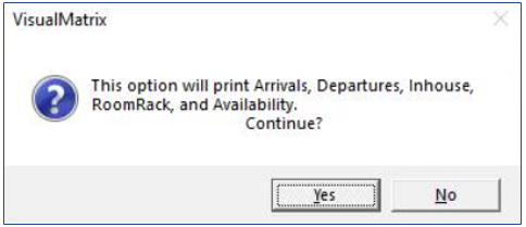 The Downtime Reports comprise a collection of various Front Office reports intended for printing at the start of each shift in the event of an outage, whether expected or unexpected. This ensures the hotel has essential information to continue operations when Visual Matrix access is unavailable.