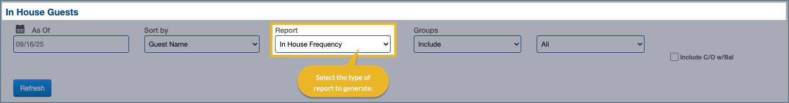 3. Refresh the Report. Click Refresh to load the results based on your filter choices.