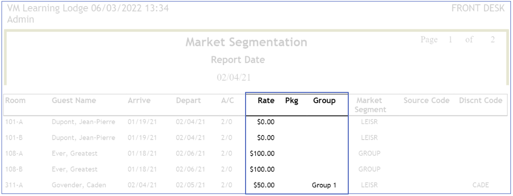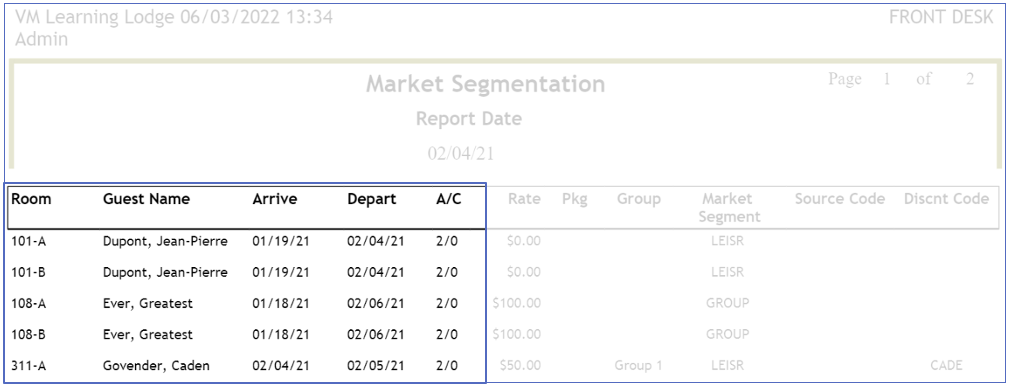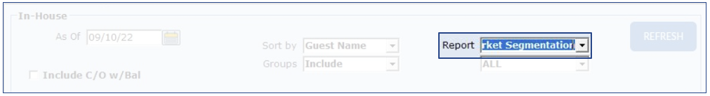 Path: Front Office > Reports > In House Guests > Choose Market Segmentation from the Report drop down.
