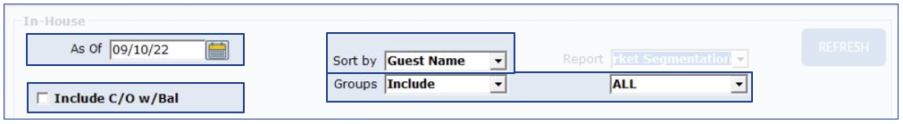 ? Watch Video The In-House Guests report provides an overview of all guests currently residing in the hotel. It has 3 sections: The In-House Guests List, The In-House Groups, the Checked-out with balance folios (if box checked). Path: Front Office > ...
