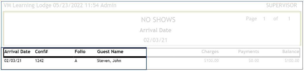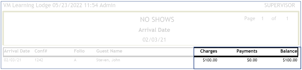 - Folio where the no-show was posted.
