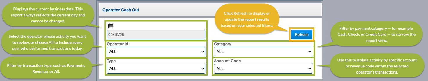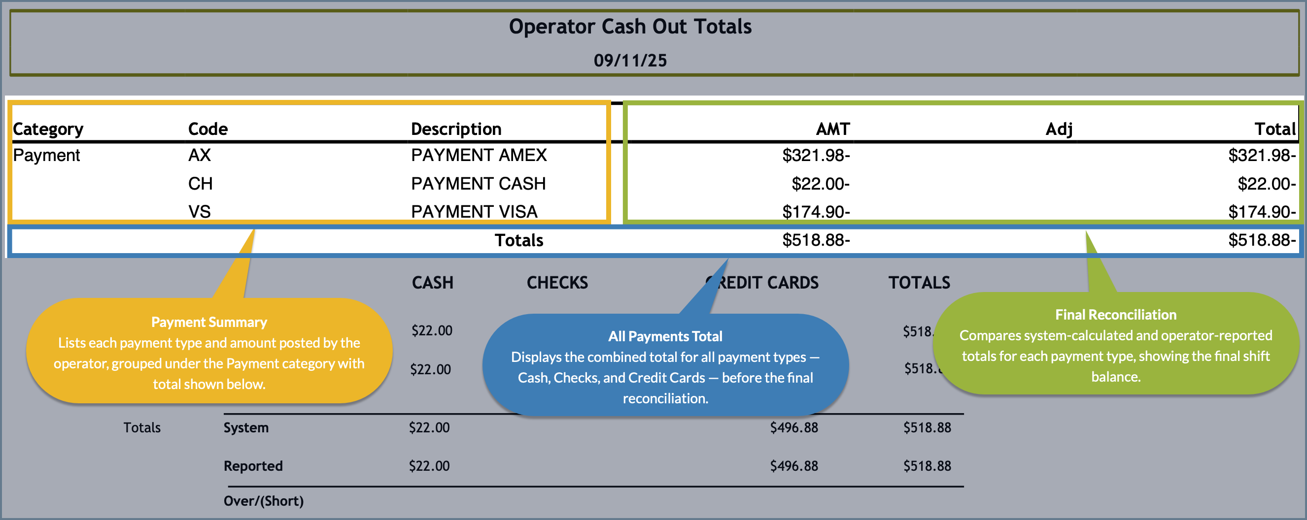 - Clerk / Time: Identifies who posted the transaction and when it occurred.