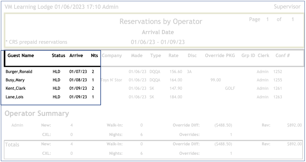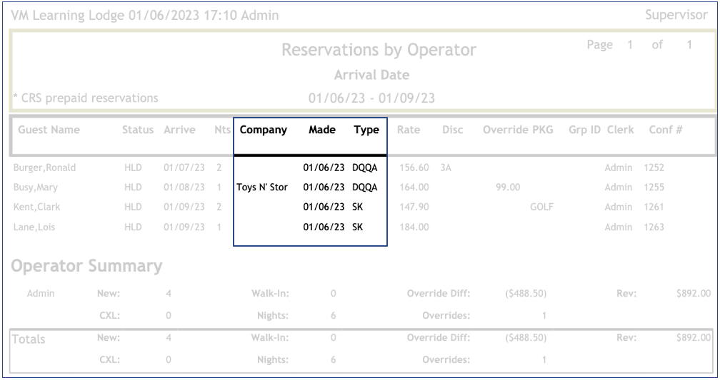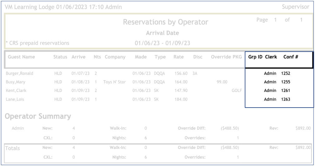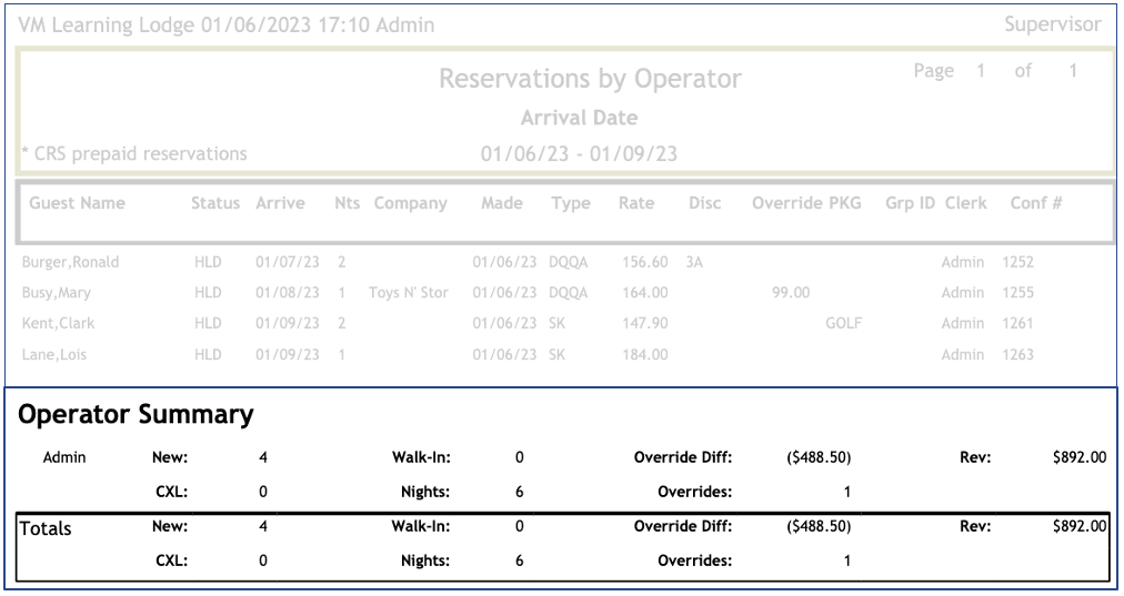 The Operator Summary displays the total of reservations created by user and for all users: