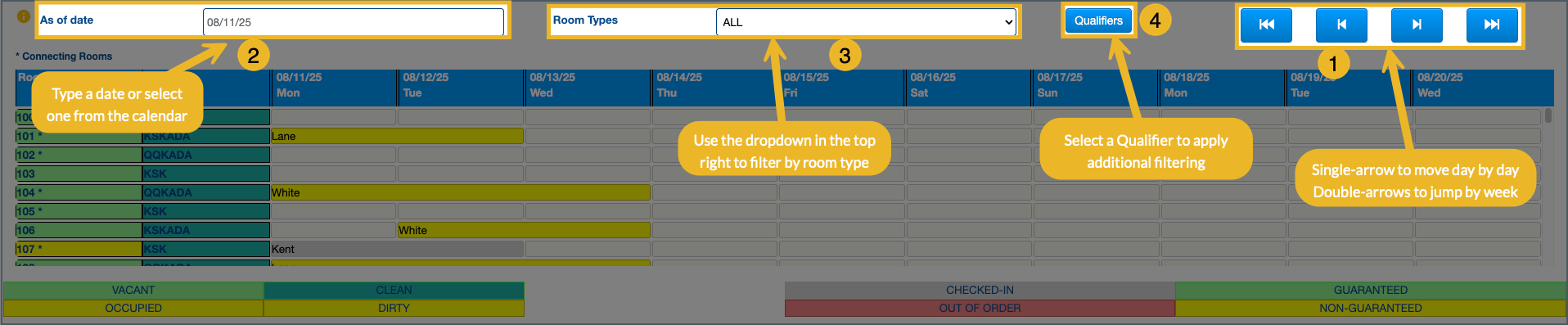 4. Click Qualifier to apply additional filteringâlike empty, occupied, or out-of-order rooms.