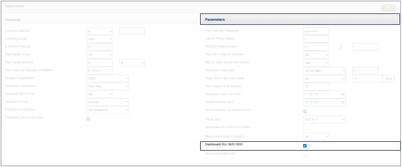 When the feature is not activated, Out of Order (OOO) rooms are included in the total room count and are also considered occupied.