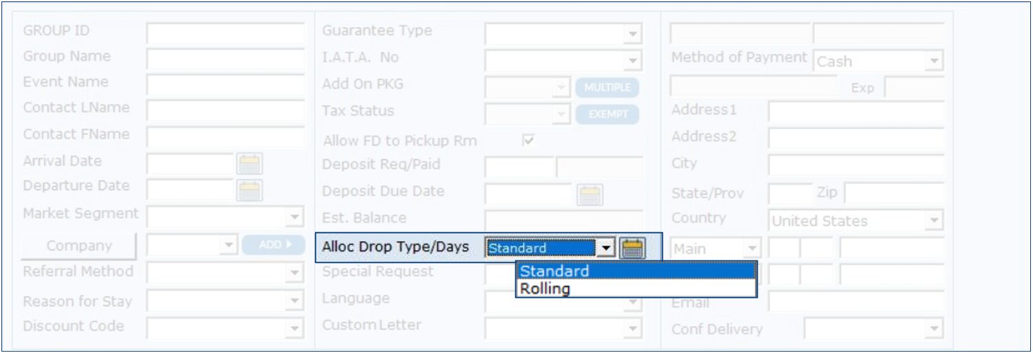 When setting up a group, every field holds significance, including the allocation drop type/date. Allocation drop implies that on the specified setup date, any unclaimed allocations will be dropped and returned to the general inventory.