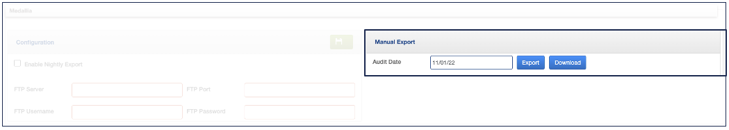 Choose the audit date and click Export (FTP data will have to be setup) or click Download the download the csv file.