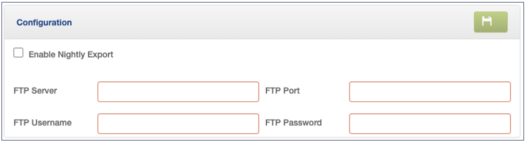 To do the export, you will need the setup about the Server to send the information to: FTP Server address, Port, Username and Password.