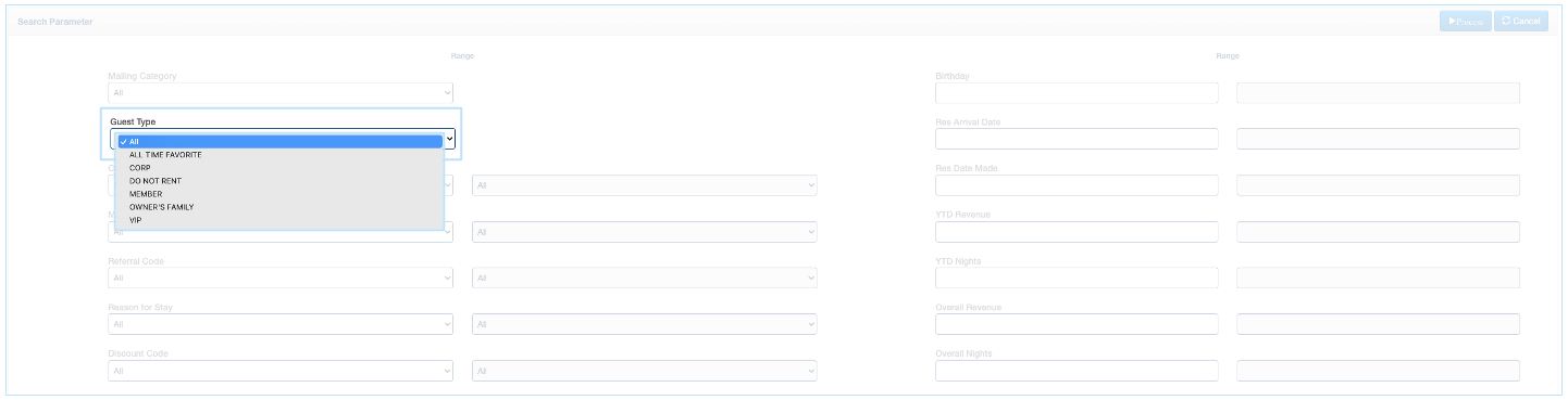1. In the Guest Type field, choose the profile you are looking for, like Do Not Rent or VIP.