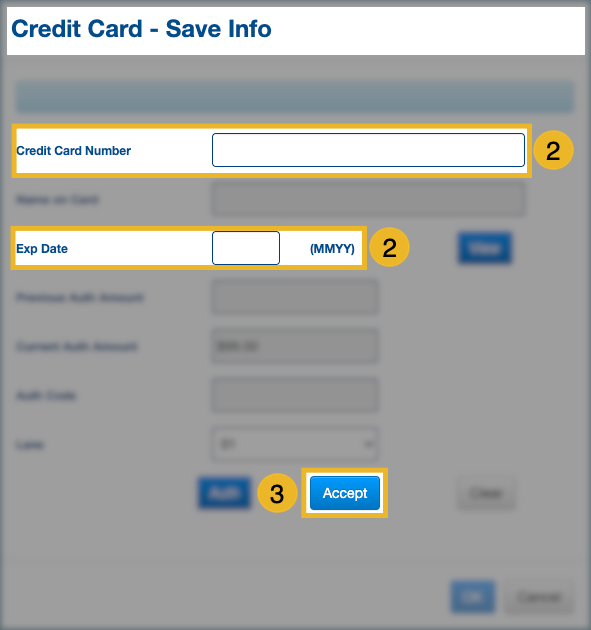 If you click Auth instead of Accept, the next option will be Authorize, which will immediately run a credit card authorization.