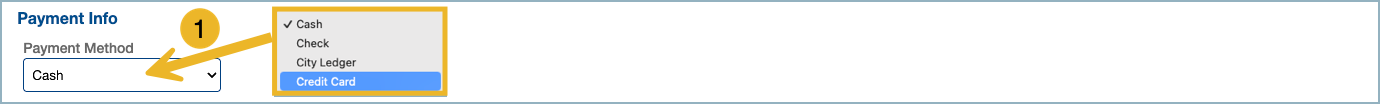 1. Select Credit Card Payment: In the reservation, go to Payment Method, select Credit Card.