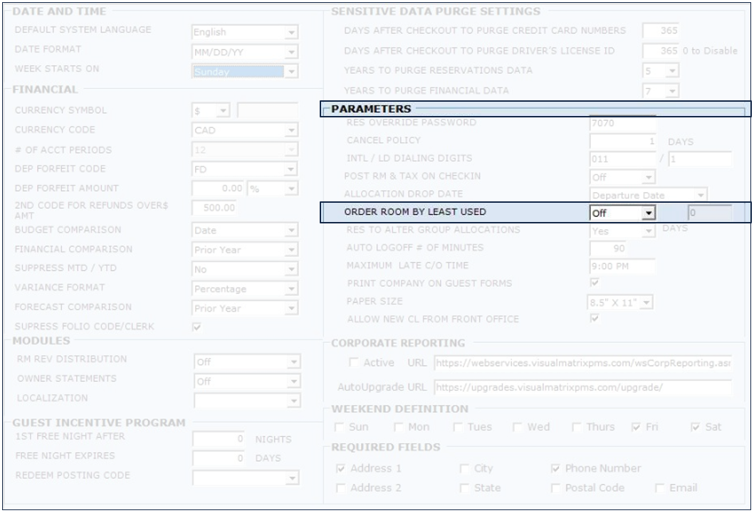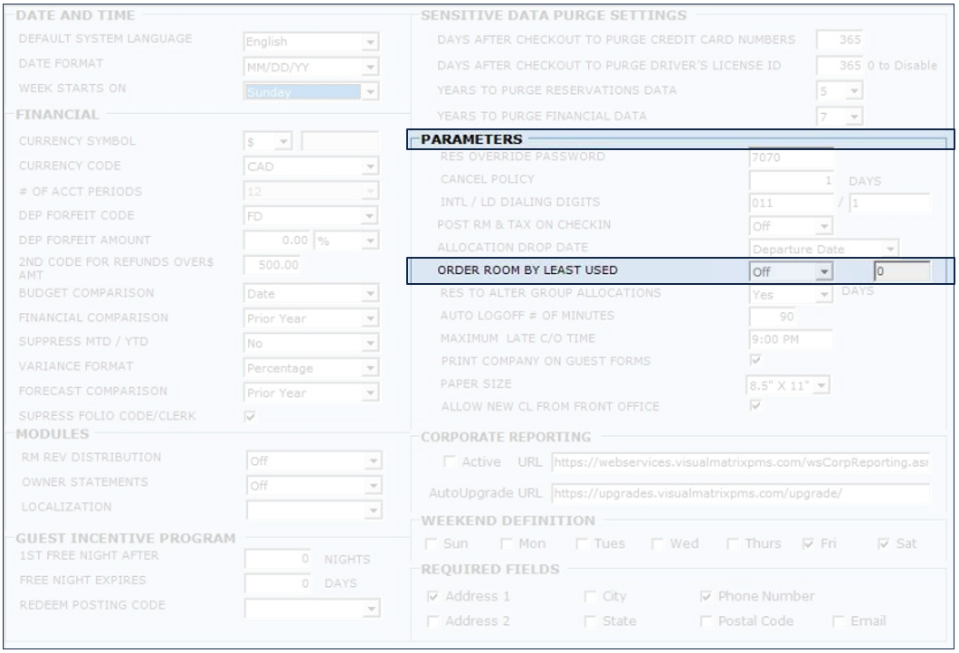 Instead of showing the numbers in numerical order when assigning rooms, this setting will show the rooms ordered by the last time they were used. This option will result in a more even room use and rotation. This can greatly reduce the need to remodel or replace items due to repetitive usage or uneven usage of the rooms.