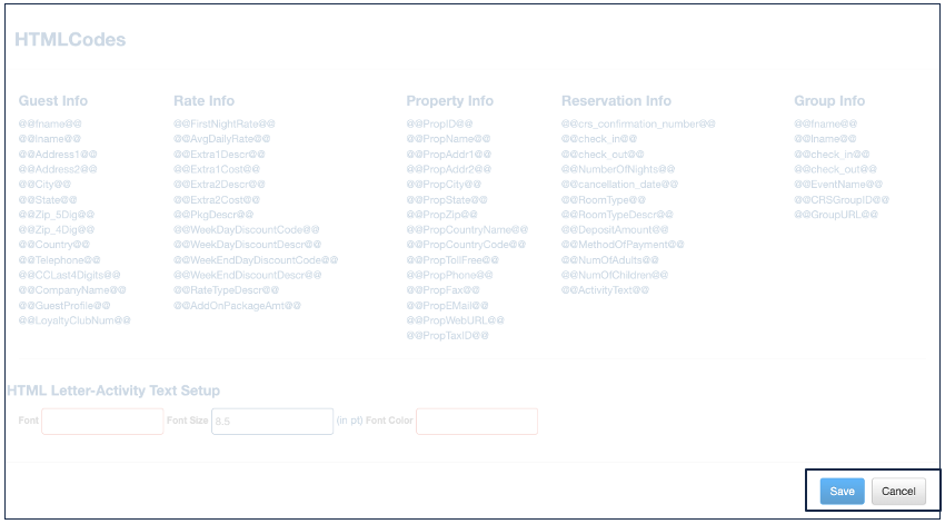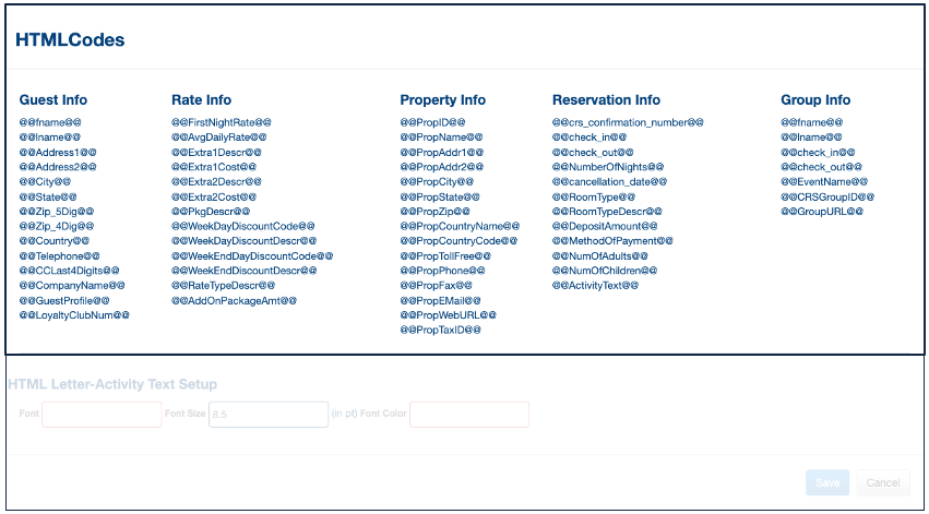 2. Any information in a reservation can be added to an HTML letter. You can insert any of the following tags in your letter: