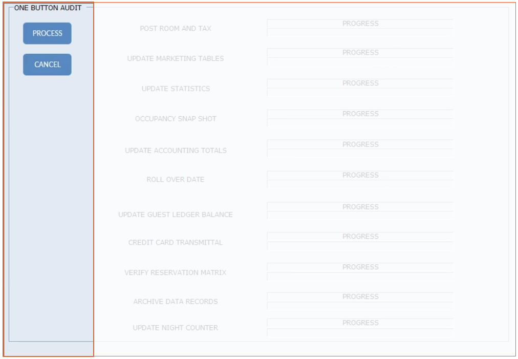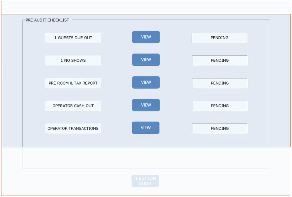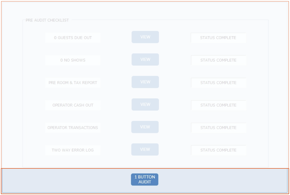 Each step needs to have its "Status Completed" to be able to use the "1 Button Audit". Dues outs and No Shows will automatically change to completed once all check-ins and check-outs are completed. every other reports (just) need to be viewed. If all the steps are not completed and you click the one-button audit, a warning will popup informing you that the audit cannot be run until all steps are completed.