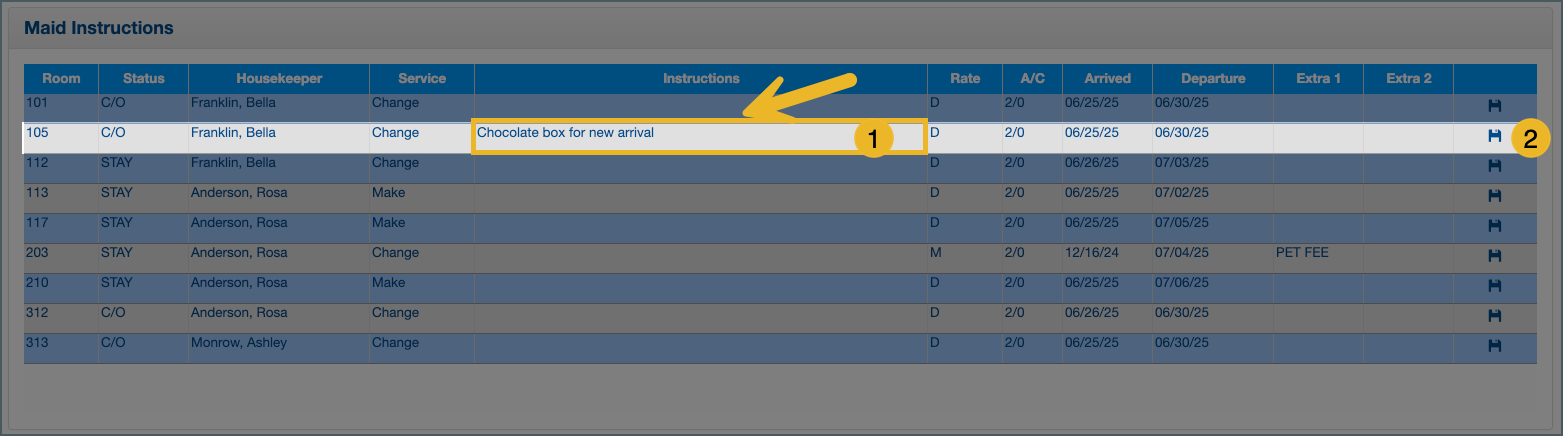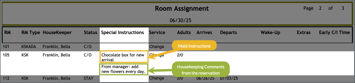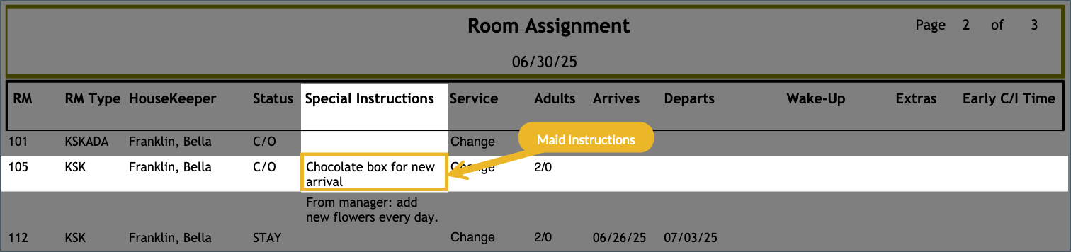 3. Maid instructions will be found on the Housekeeping Room Assignments Report.