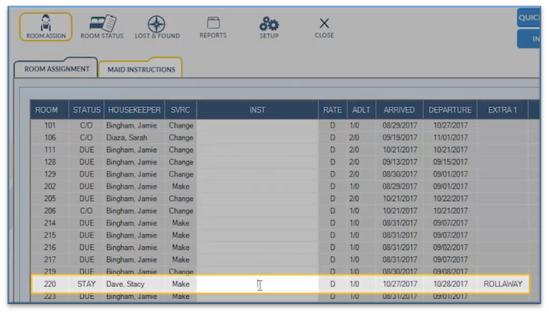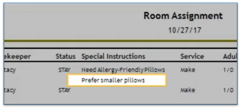 Maid instructions can also be found on the Housekeeping Room Assignments Report and in the