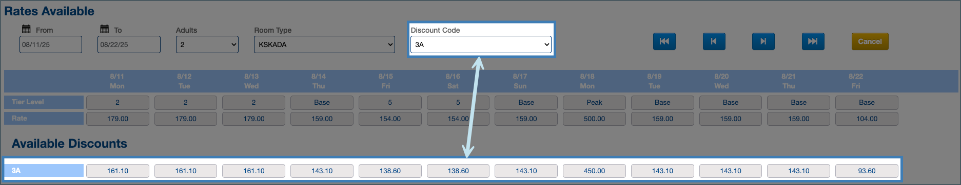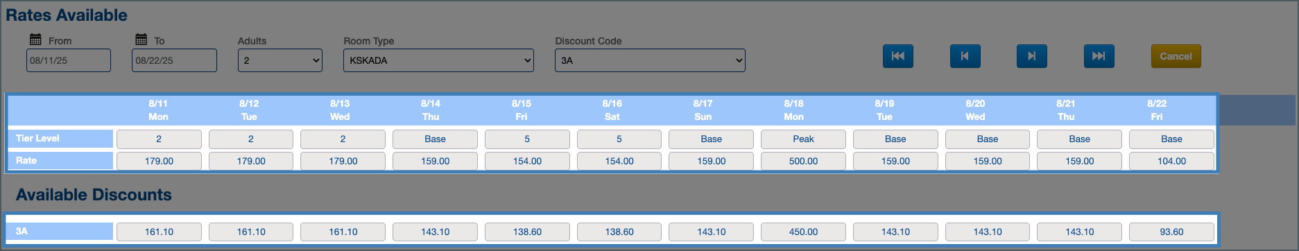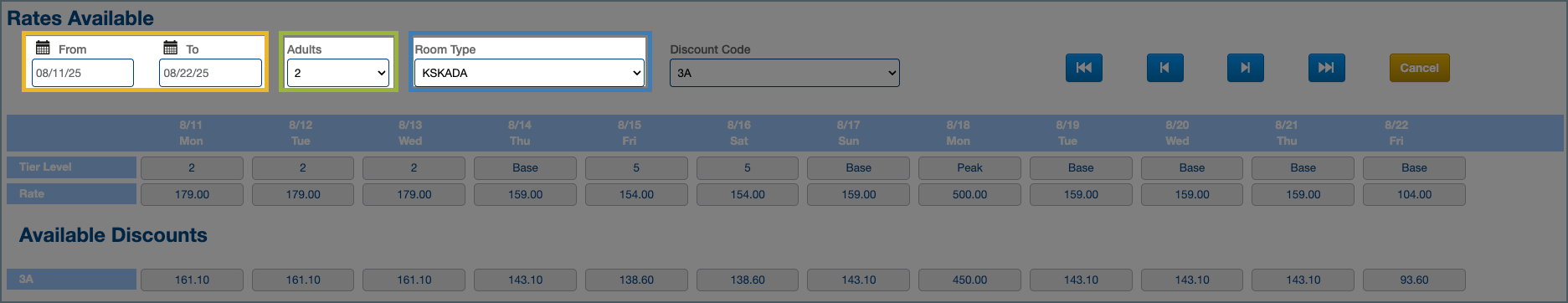 5. Select Stay Dates: Choose the arrival and departure dates again, or click and drag across the availability grid to highlight multiple nights.