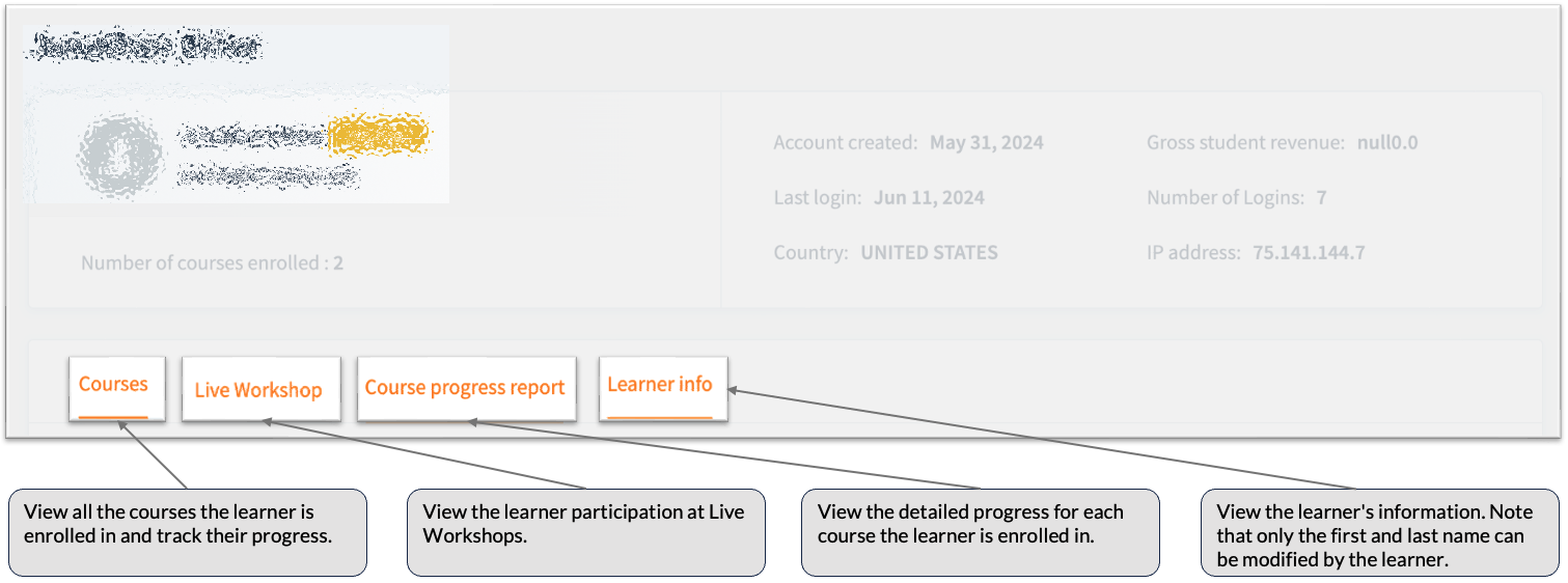 5. A new page will display with the learner's information.