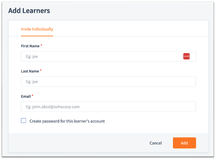 Creating a password for the learner's account is not necessary. The learner will receive an email with an enrollment link, allowing them to set up a password and complete their profile.
