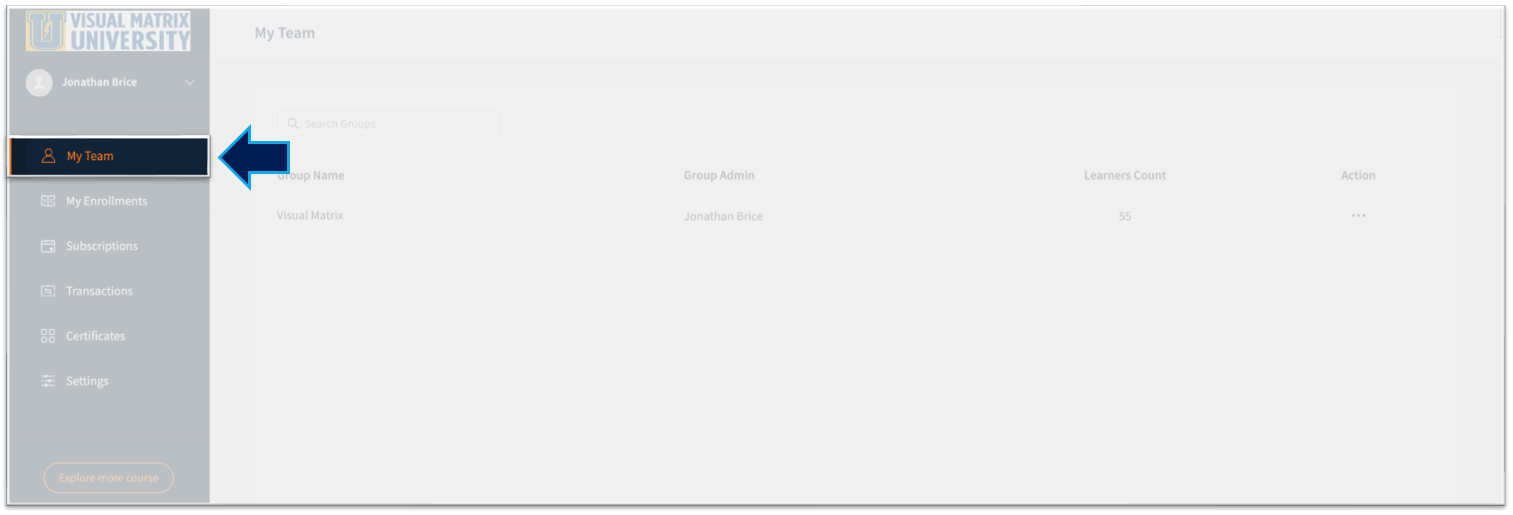 3. Select "My Team" on the left side menu.