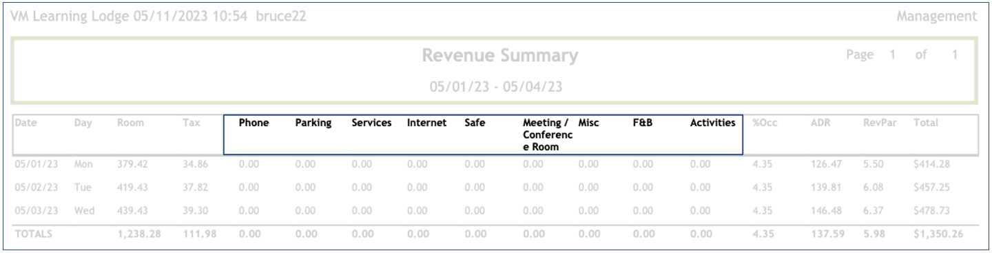 3. The new categories will now reflect in the Revenue Summary Report and in the Accounting Code setup.