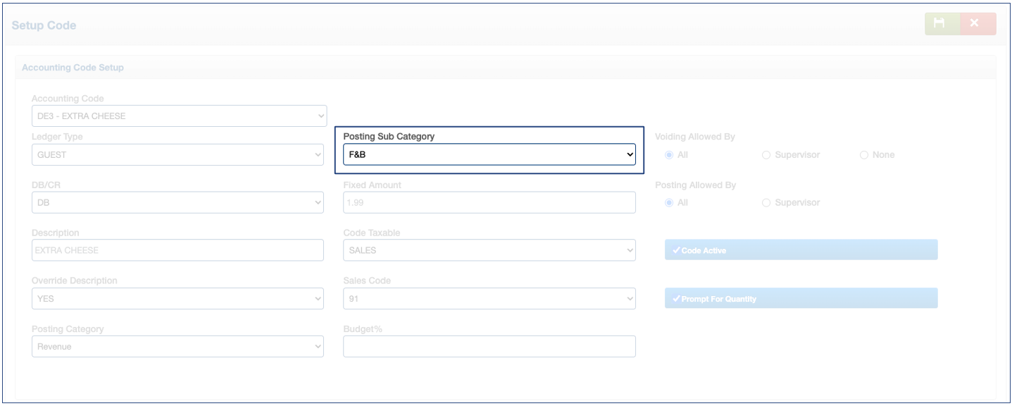 There are various choices for configuring void authorization on a code. You can decide whether to permit the code to be voided after posting, allow anyone to void it, or restrict voiding to users with supervisor credentials. Path: Management > ...