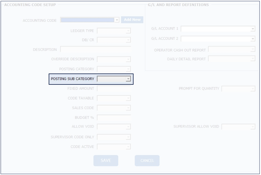 ? Watch Video This page will show the list of the accounting codes and any G/L accounts assigned to those codes. Path: Management > Setup > Accounting > G/L & Report Def Click an accounting code to open it in the Setup Code tab. If you are using a ...