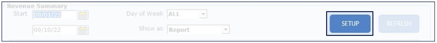 Path: Management > Admin > Reports > Revenue Summary > Click on Setup