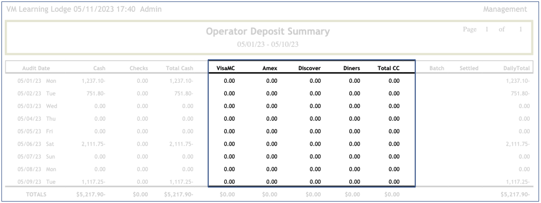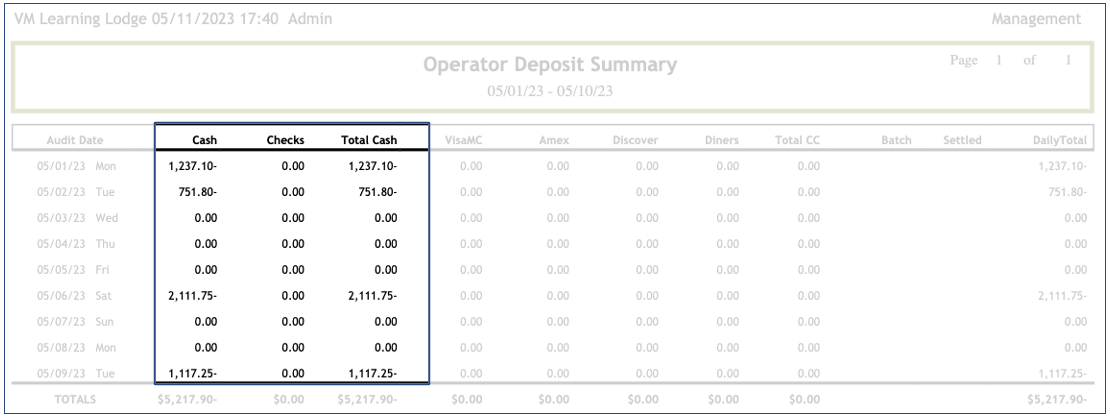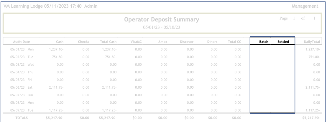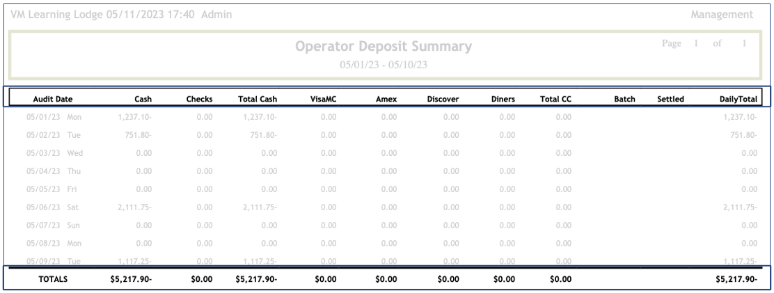Mgmt Operator Deposits Summary Report (Desktop) π₯