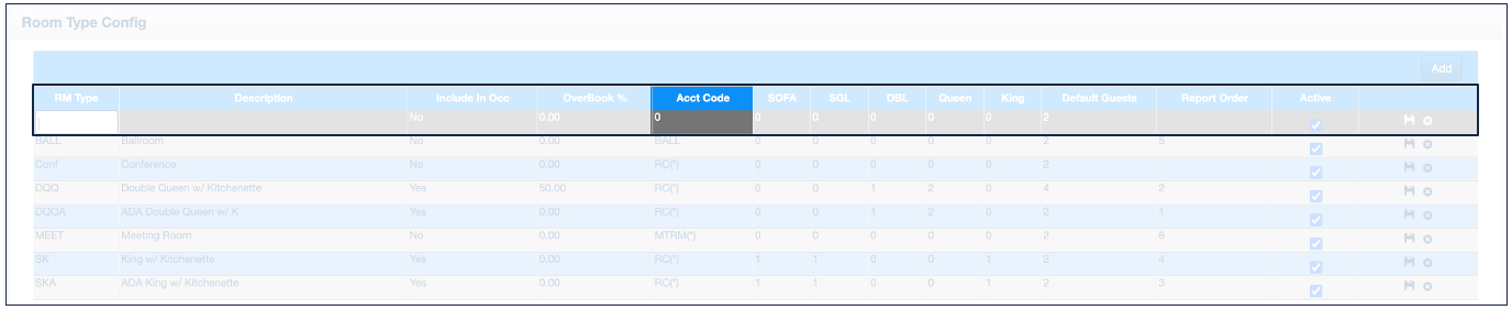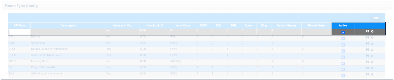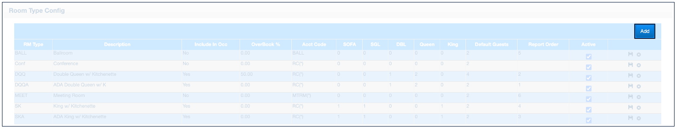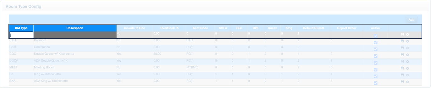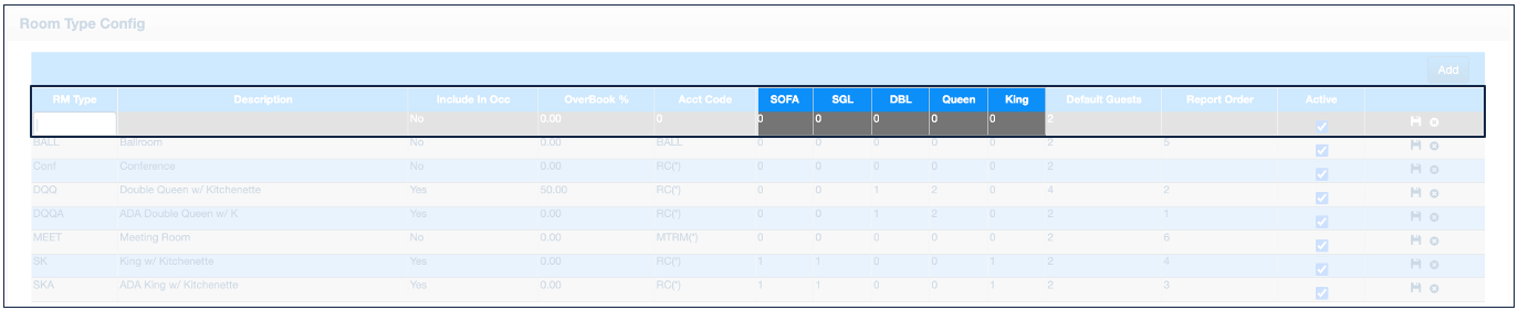 7. Enter the furniture (beds and/or sofa) that make up the room in the Sofa, Single, Double, Queen, and King fields. Except the sofa column, the other columns will be used to generate the Census report is Management History reports.