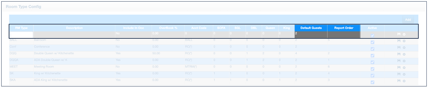 8. Enter the Default Guests count. This number will only trigger a warning at the moment of creating the rates for this room type if rates are not entered for that number of guests.