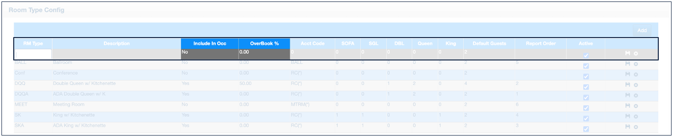 4. Select Yes or No to include the room in the Occupancy (rate). The example of a room not included in the occupancy will be Conference, Meeting or Storage rooms tracked.
