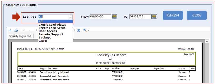 - Credit Card Views: will give you the list, date, and time, of anyone that viewed credit card numbers in any reservations and which credit card was viewed.