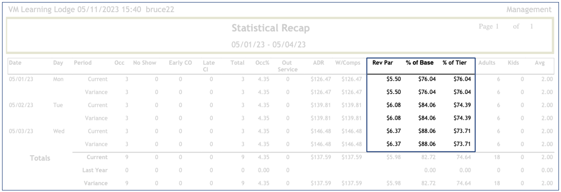 - ADR % of tier - ADR compared to the applicable tier rate.